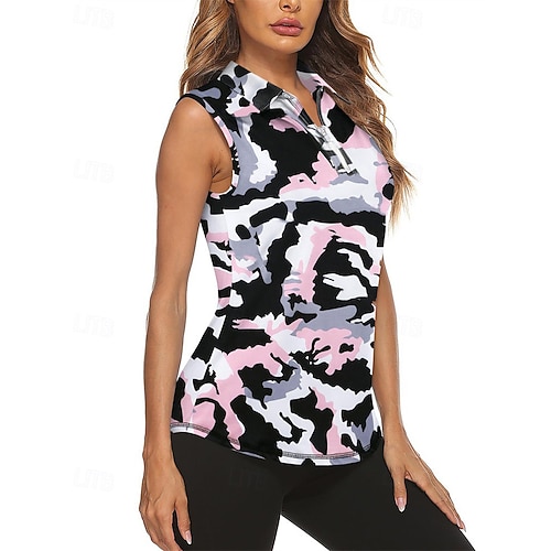 Per donna Mimetico Maglietta sportiva Polo da golf Maglia da tennis Senza Maniche Cerniera Alta elasticità Traspirante Tennis Golf Pickleball Collo ripiegato Collo con zip Maglietta Top Rosa Blu Viola