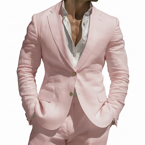 Herren Hochzeit Strandhochzeit Leinenanzüge Steigendes Revers Rosa Himmelblau Mode Lässig Einfarbig Standard Passform 2-teilig Einreiher - 1 Knopf