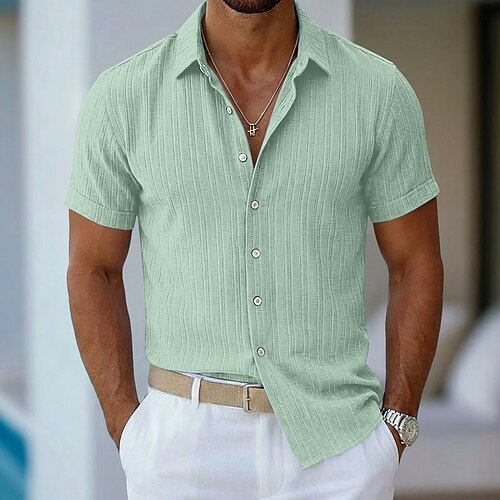 Per uomo Camicia Camicia Estiva Camicia casual Camicia da Spiaggia Camicia con Bottoni Nero Bianco Rosa Blu Verde Manica Corta Semplice Bavero Vacanza Camicia hawaiana Abbigliamento Poliestere Moda