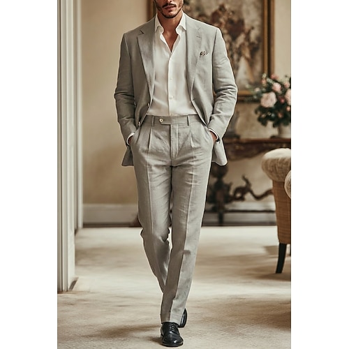 Uomo Completi in Lino Abiti da lavoro Casuale Affari Bianco Verde scuro Primavera Estate Tuta Bavero classico Moda Quotidiano Tinta unita Vestibilità su misura 2 pezzi Monopetto Due Bottoni
