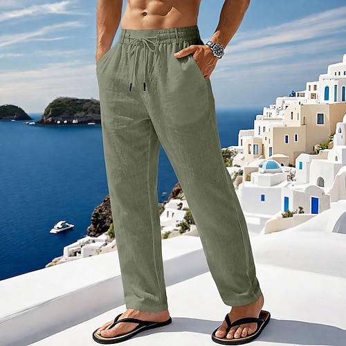 Per uomo Pantaloni di Lino Pantaloni Pantaloni Estivi Pantaloni Larghi Pantaloni da Spiaggia Tasca Semplice Comodità Traspirante Lunghezza intera Casuale Quotidiano All'aperto Vacanza Moda Bianco