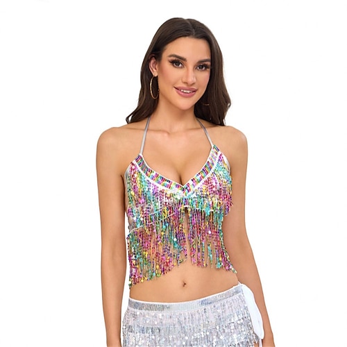 Costume di Carnevale Carnevale Gonna Top a fascia Costume di paillettes Cosplay Paillettes Frange Adulti Per donna Carnevale martedì grasso Martedì grasso Performance Feste Costume di Carnevale facile