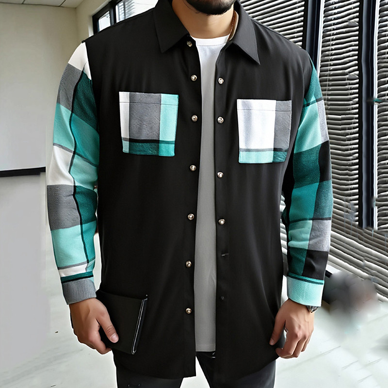 Men's Shacket Shirt Jacket Winter Jacket Plaid Vacation Daily Wear Black Sky Blue Long Sleeve Lapel Fall Winter Clothing Apparel Front Pocket