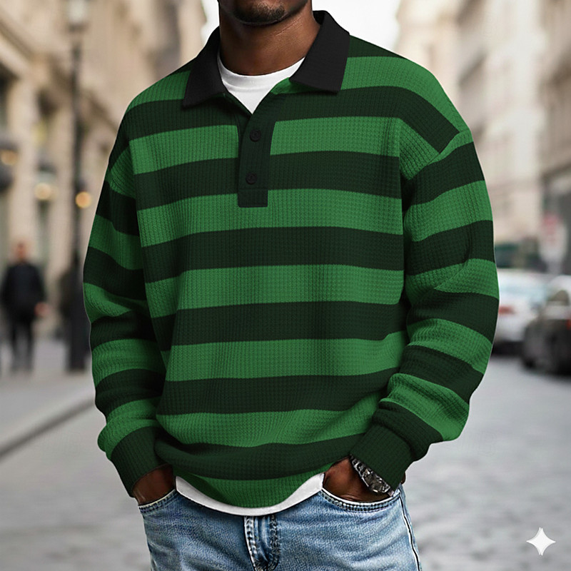 Men's Horizontal Stripes Waffle Polo Shirts Rugby Polo Rugby Polo Shirts Long Sleeve Polo Shirts Collared Shirts Casual Athleisure Daily Wear Buttons Spring Fall Winter Blue Red Green
