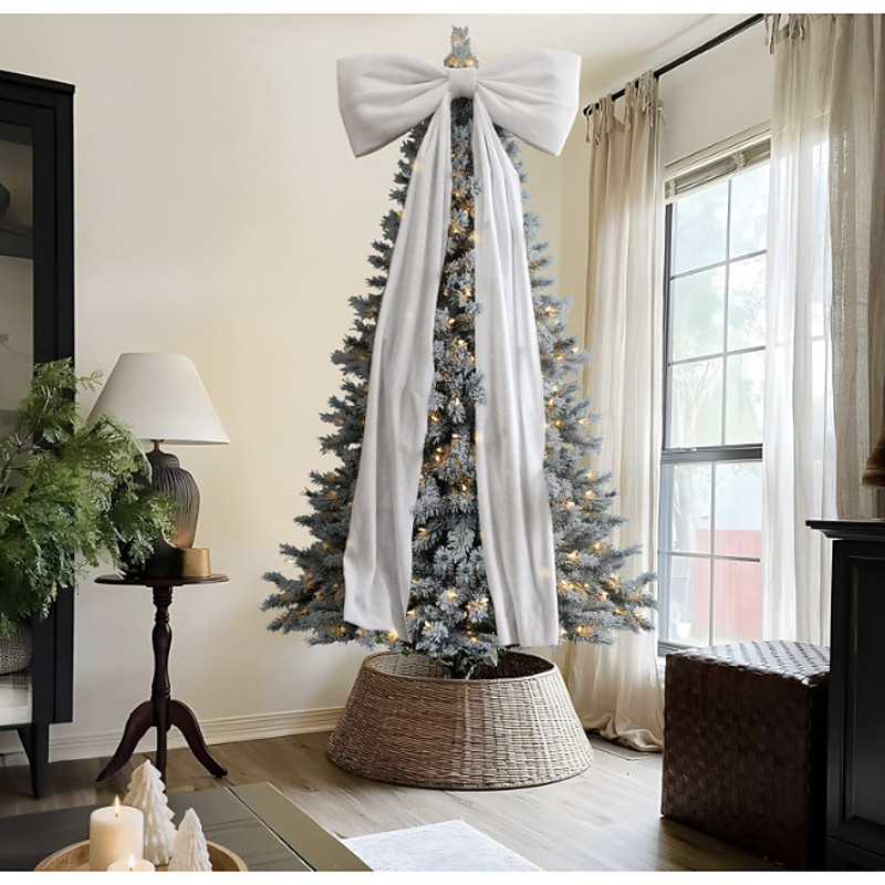 6 Ft Large Bows for Christmas Tree Big Red White Velvet Bow for Tree Topper Window Wall Mantle - Indoor Home Room Party Valentines Xmas Decoration