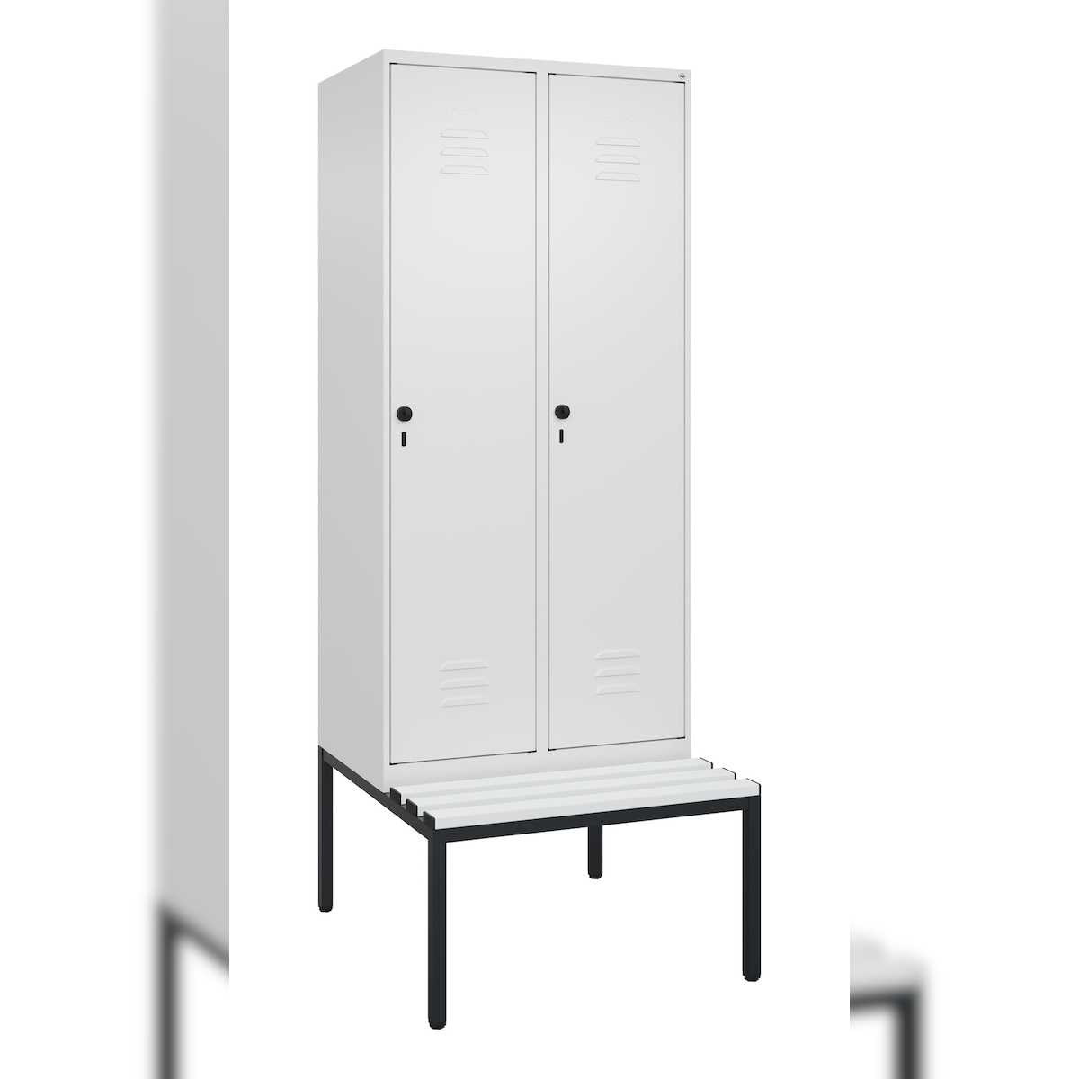C+P Spind Classic PLUS, Kunststoff untergebaute Sitzbank, 2 Abteile, HxBxT 212x80x82cm, Sicherheitsdrehriegel, Verkehrsweiß von PROREGAL