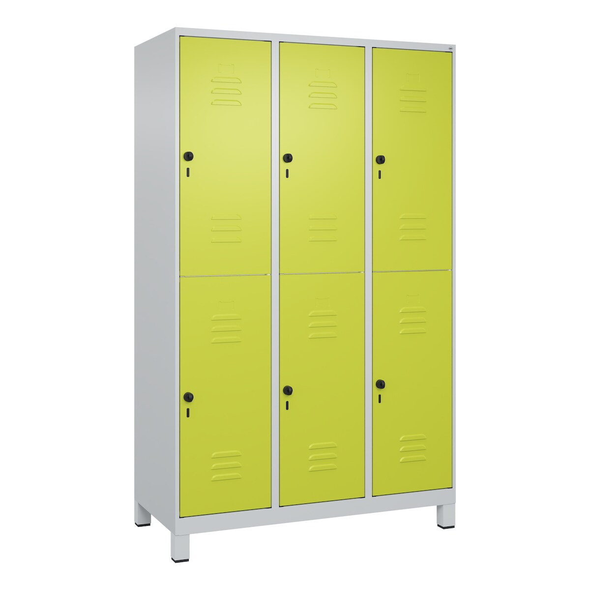 C+P Spind Classic PLUS, Füßen, 6 Abteile, HxBxT 195x120x50cm, Sicherheitsdrehriegel, Hellgrau/Clowngrün von PROREGAL