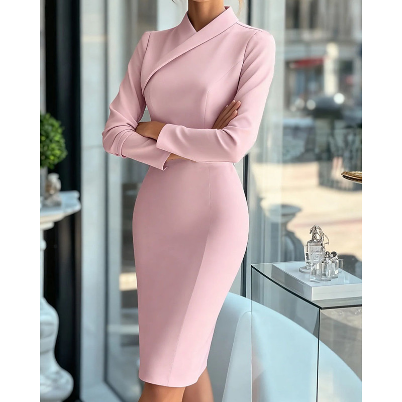 Women's Long Dress Maxi Dress Sheath Dress Formal Dresses Elegant Fashion Modern Daily Office Holiday Regular Fit Plain Long Sleeve Stand Collar Pink Purple Light Blue Spring Fall Winter