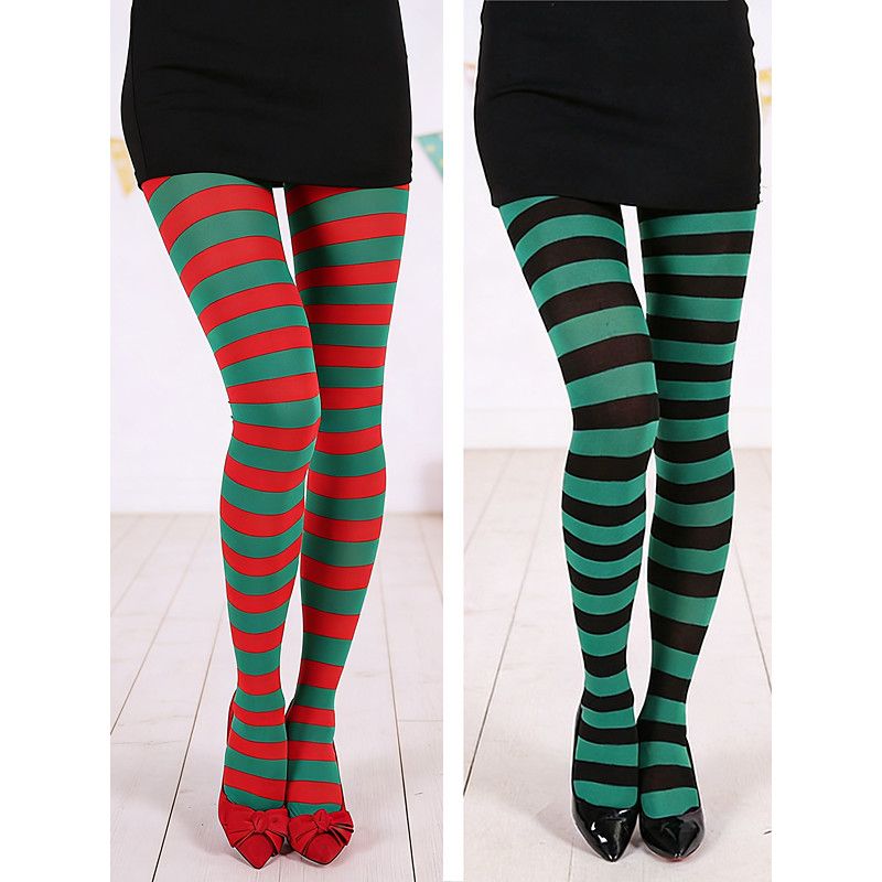 Women's Carnival Party Striped Tights Set (2 Pairs), Stretchy Over-the-Knee Style, Blue Green Horizontal Stripe Design, Fun Costume Socks for Adults, Festival, Carnival, Cosplay Theme Parties