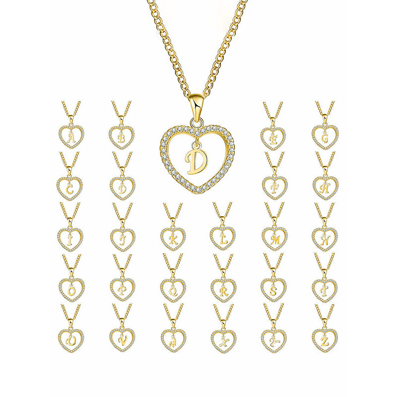 Women's Heart-Shaped Pendant Necklace – Alloy Material, 26 Alphabet Styles, Rhinestone Accents – Perfect Valentine's Day Gift