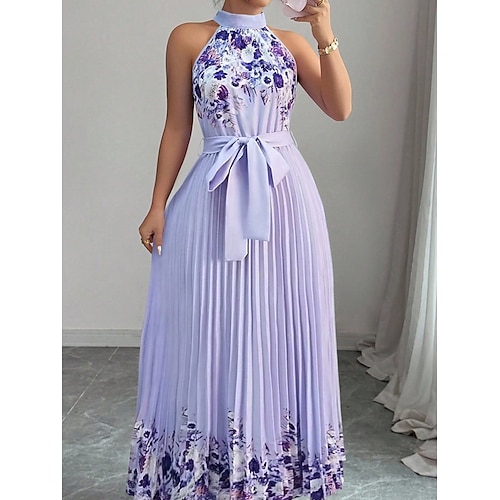 Per donna Abito maxi Abito a trapezio Vestito all'americana Vacanza Casual All'aperto Uscire Vestibilità regolare Floreale Grafico Senza Maniche All'americana Blu Rosa Viola Verde Estate Primavera