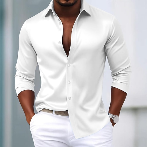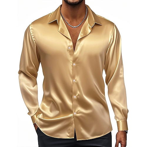 Per uomo Camicia Camicia in raso Camicia elegante Camicia casual Camicia con Bottoni Camicia da Ballo Blocco di colori Formale Matrimonio Nero Bianco Vino Blu marino Manica Lunga Bavero Primavera