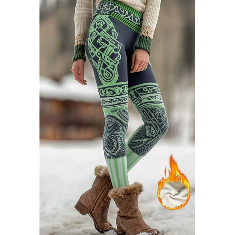 Women's Viking Boho Fleece Lined Leggings Leggings Vacation Vintage Ethnic Style Full Length High Waist Geometric Pattern 3D Print Thermal Warm Windproof Comfy Stretchy Home Daily Yellow Light Purple