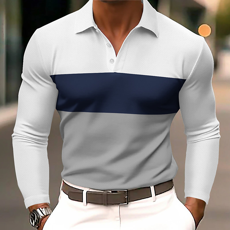 Men's Horizontal Stripes Polo Long Sleeve Polo Shirts Lapel Casual Outdoor Athleisure Daily Wear 3D Print Buttons Spring Fall Blue Navy Blue Purple