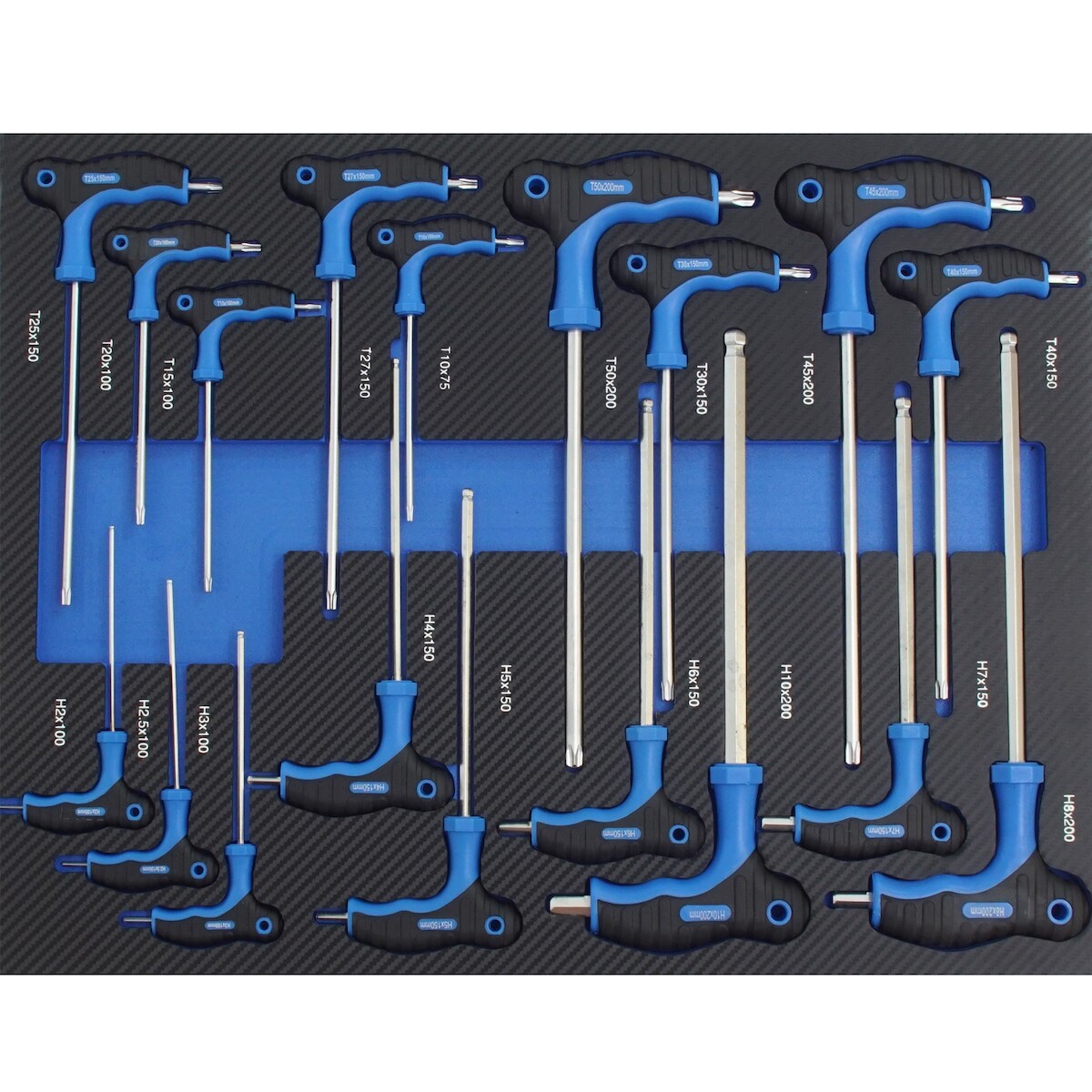 Baumarktplus Profi Werkstattwagen Einlage blau Innensechskantschlüsselsatz Torx T-Griff 18 tlg. Schaum 520x400mm
