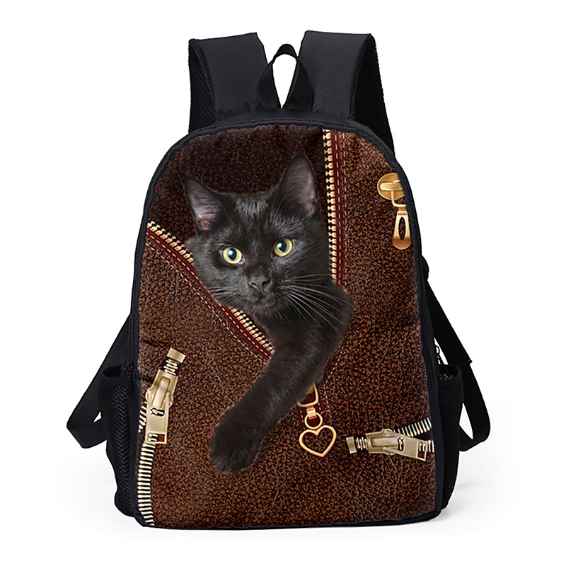 Black Cat Zipper Design Backpack – Cute 3D Animal Print School Bag for Girls, Teens, and Cat Lovers, Large Capacity Lightweight Bookbag for Daily Use Ideal for Back to School or Gifts