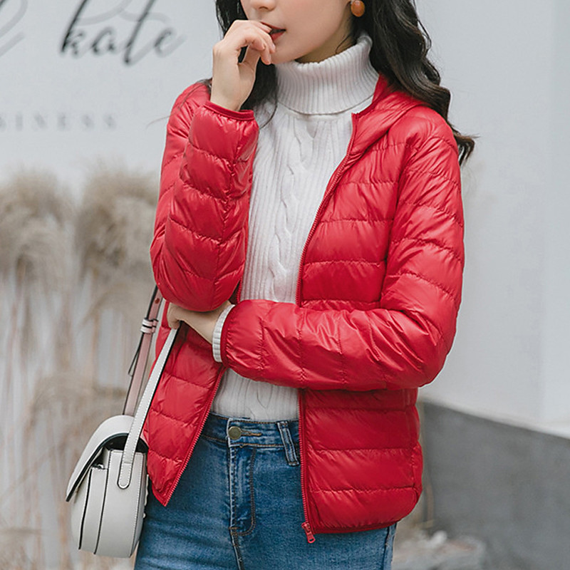 Women's Down Jacket Puffer Jacket Warm Comfortable Zipper Pocket Fashion Modern Casual Plain Going out Weekend Zipper Regular Hooded Regular Fit Long Sleeve Outerwear Black White Light Green Winter