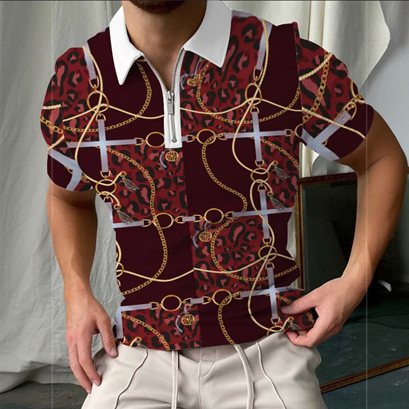 Men's Graphic Zip Polo Short Sleeve Turndown Casual Daily Athleisure Casual Daily Zipper Summer Black Green Brown