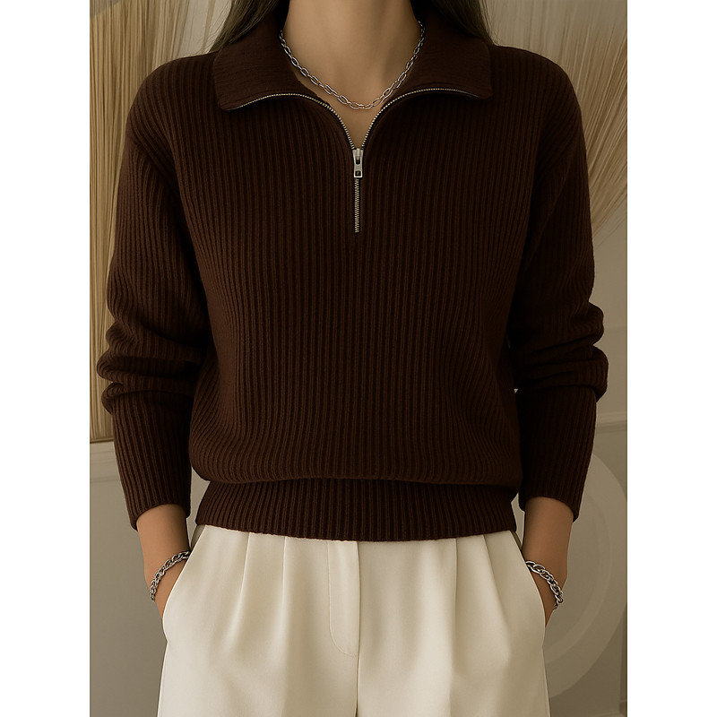Women's Sweater Daily Half Zip Zipper Long Sleeve Regular Tops Knit Daily Weekend Wine Red Black Spring Fall