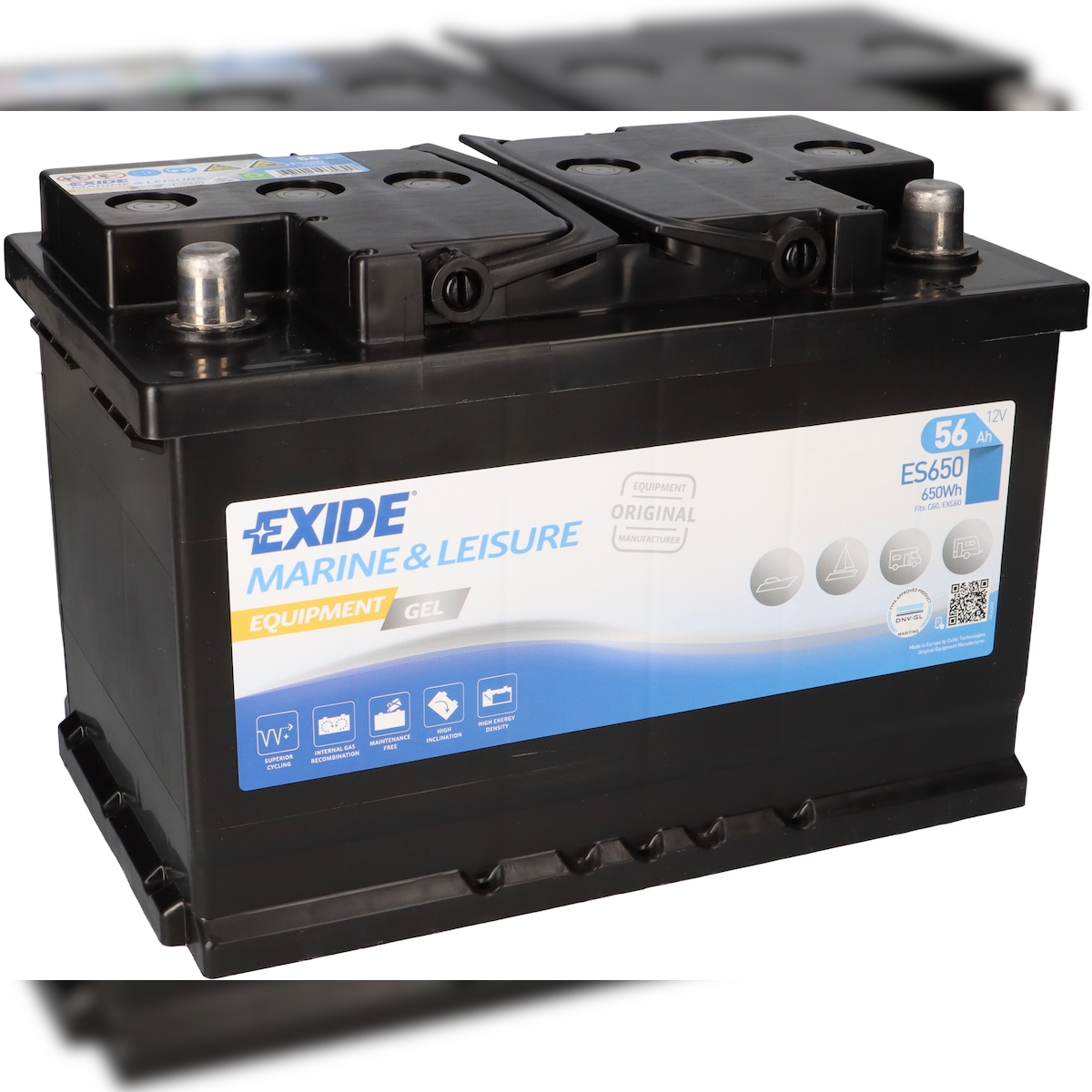 Versorgungsbatterie Exide ES650 (passend für G60) 12V 56Ah Bleigel Akku VRLA