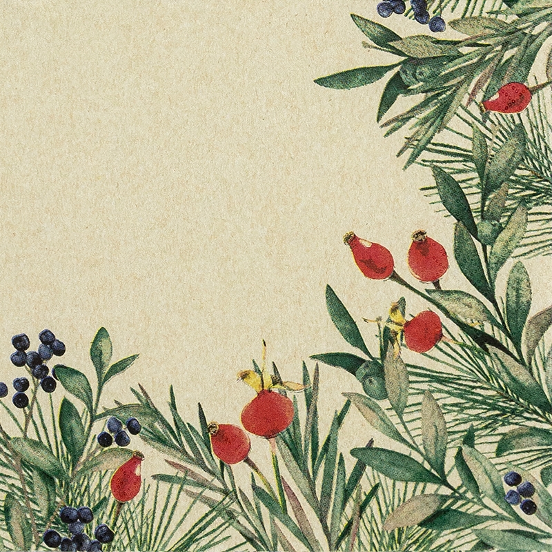 Home Fashion, Rosehip and Evergreen, Lunch-Servietten aufgefaltetes Maß 33 cm x 33 cm, im Viertelfalz, 20 Stück pro Pack