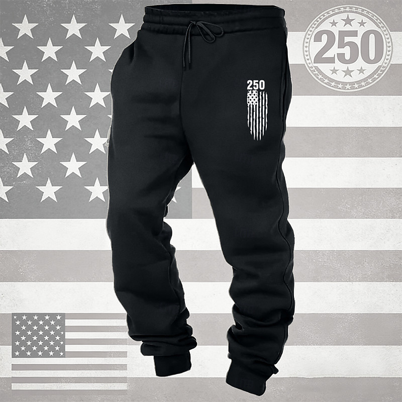 Men's Sweatpants Joggers Trousers Drawstring Pocket Elastic Waist National Flag Comfort Breathable Daily Outdoor America's 250th Anniversary Vacation Fashion Blue Black Micro-elastic