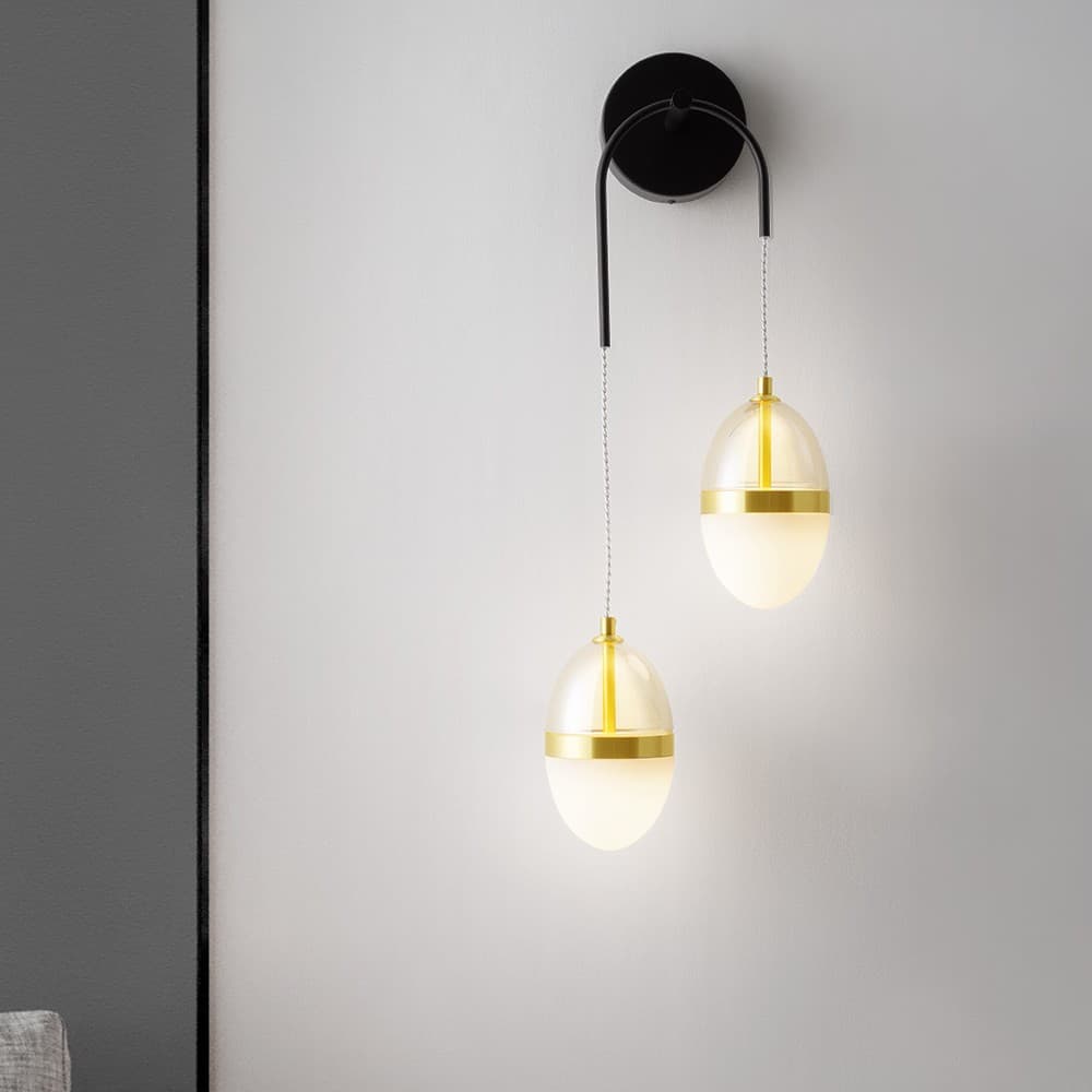 Nova Luce Egna - applique murale - 27 x 76 x 14,5 cm - 24W LED inclus - opale, verre cognac, or et noir