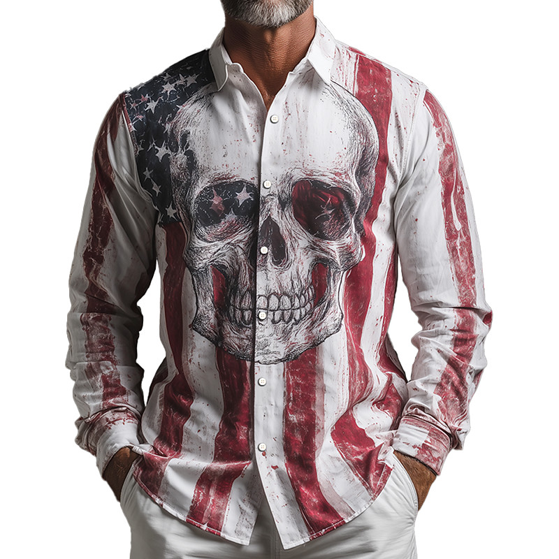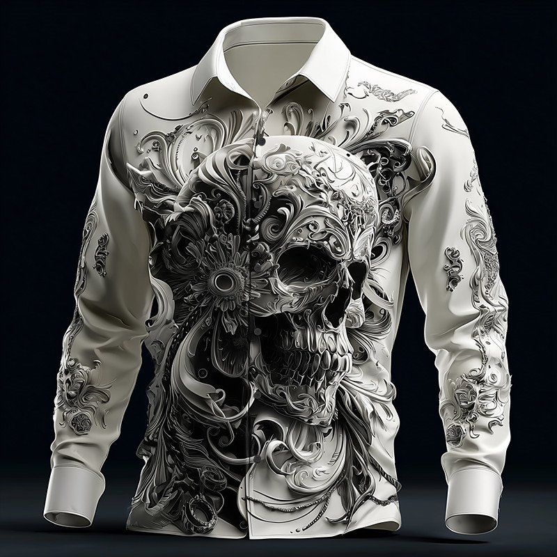 Men's Costumes Skulls Shirt Button Up Shirt Casual Dress Shirt Long Sleeve Dark Gothic Style Holiday Summer Spring Turndown 3D Print Collared Shirts White 1 Black White