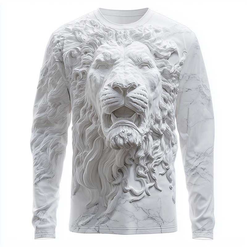 Men's Optical Illusion Lion T Shirt Long Sleeve T shirt 3D Print Crew Neck Shirt Fashion Exaggerated 3D Street Daily White White 2 Summer Spring Fall Clothing Apparel S M L XL XXL XXXL