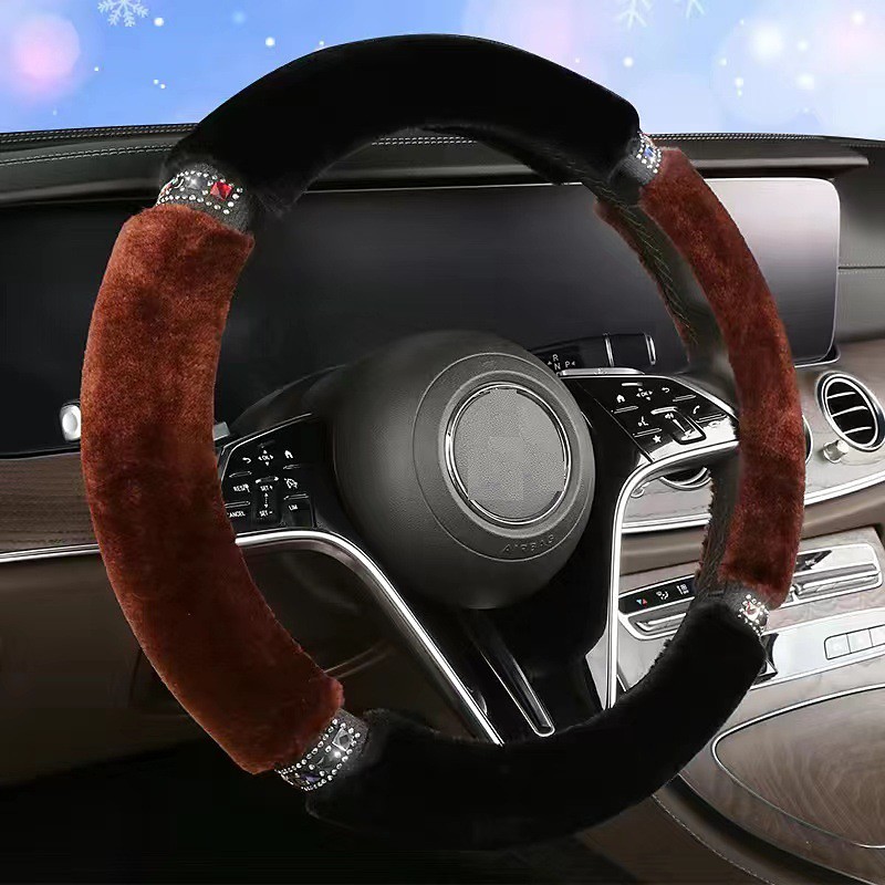 Winter Fashion Diamond Car Steering Wheel Cover Universal 37-38cm Diameter Soft Plush Rhinestone Car Steering Wheel Cover Interior Accessories Steering-Cover Car-styling