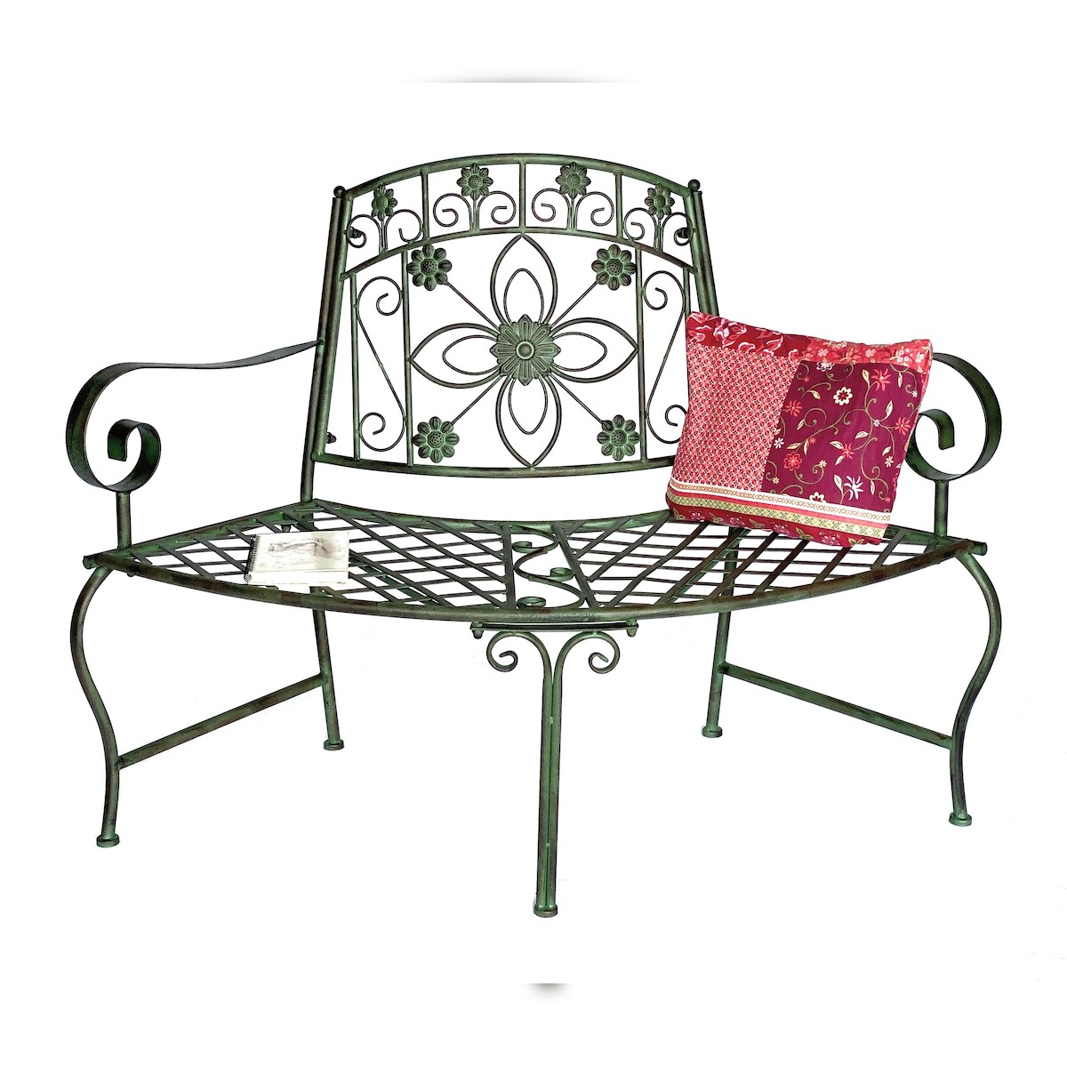 DanDiBo Sitzbank Halbrund Metall Wetterfest Grün 130 cm Baumbank 96009 Gartenbank Parkbank Eisenbank