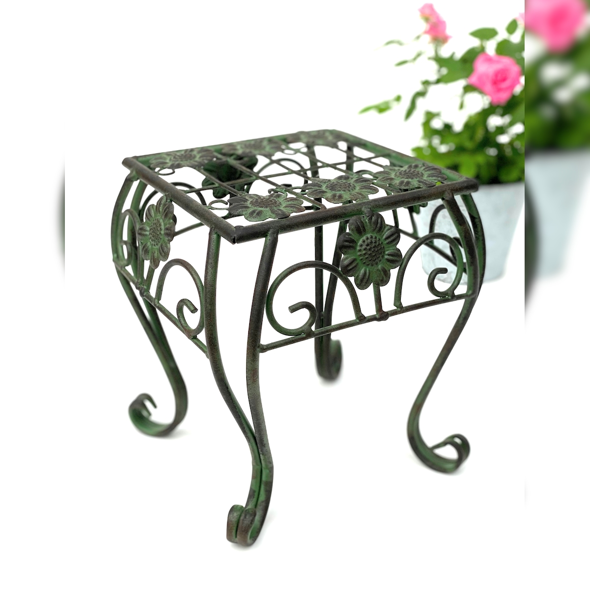 DanDiBo Blumenhocker Metall Grün Eckig 25 cm Blumenständer 96007 S Blumensäule Modern Pflanzenständer Pflanzenhocker Vintage