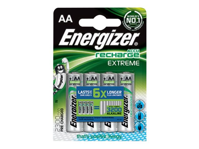 Energizer Accu Recharge Extreme 2300 AA BP4, Wiederaufladbarer Akku, Nickel-Metallhydrid (NiMH), 1,2 V, 4 Stück(e), 2300 mAh, Silber