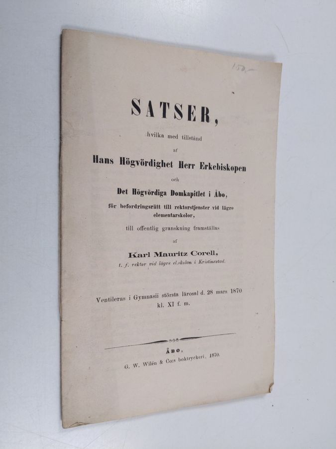 Karl Mauritz Corell : Satser, hvilka med tillstånd af hans högvördighet herr erkebiskopen och det högvördiga domkapitlet i Åbo, för ...