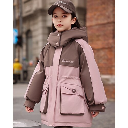 Bambini Ragazze Giacca in piuma Giacca Imbottita Blocco di colori Sport Tasca Tenere al caldo Antivento All'aperto Cappotto Capispalla 5 anni Inverno Rosa Viola Cachi