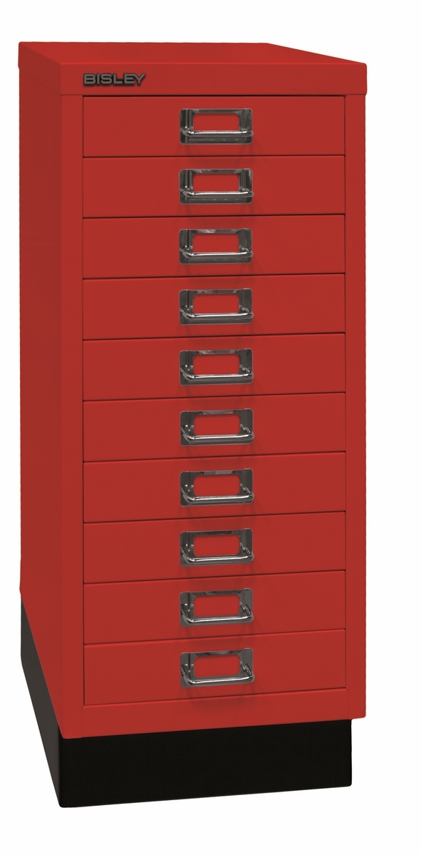 BISLEY Schubladenschrank aus Metall DIN A4 in kardinalrot Schrank mit 10 Schubladen und Sockel Werkzeugschrank