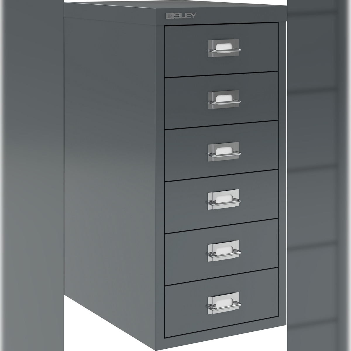 Bisley Multidrawer Schubladenschrank aus Metall mit 6 Schubladen DIN A4 ohne Sockel - Farbe: Anthrazitgrau