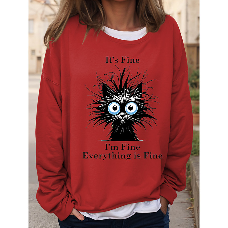 Women's Tunic T Shirt Fashion Casual Cat Regular Tops Long Sleeve Crew Neck Print Loose Fit Daily White Spring Fall