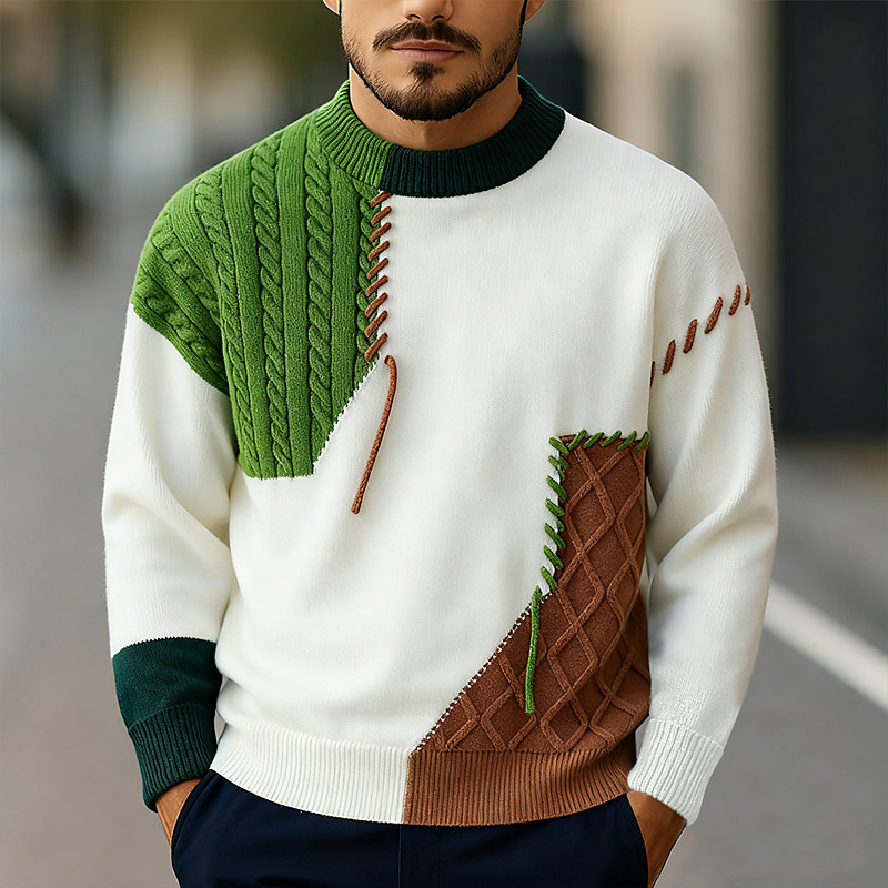 Men's Sweater Dress Sweater Pullover Sweater Jumper Knit Sweater Ribbed Cable Knit Regular Tops Knitted Abstract Crew Neck Modern Modern Contemporary Casual Daily Wear Clothing Apparel Fall Fall