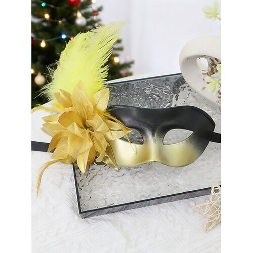 maschera da donna in piume verdi con decorazione floreale per feste di Natale, ballo carnevale