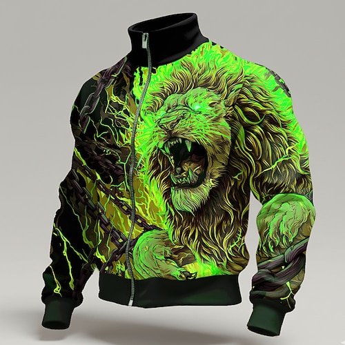 Per uomo Leone Fiamma Giacca di pelle Felpa Cool Quotidiano Fantasia Pantaloni Tattici Collo alla coreana All'aperto Abbigliamento casual alla moda Feste Viola Arancione Verde Con zip Primavera