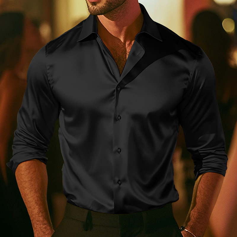 Men's Shirt Satin Shirt Dress Shirt Casual Shirt Button Up Shirt Prom Shirt Plain Formal Wedding Black White Wine Blue Long Sleeve Lapel All Seasons Clothing Apparel