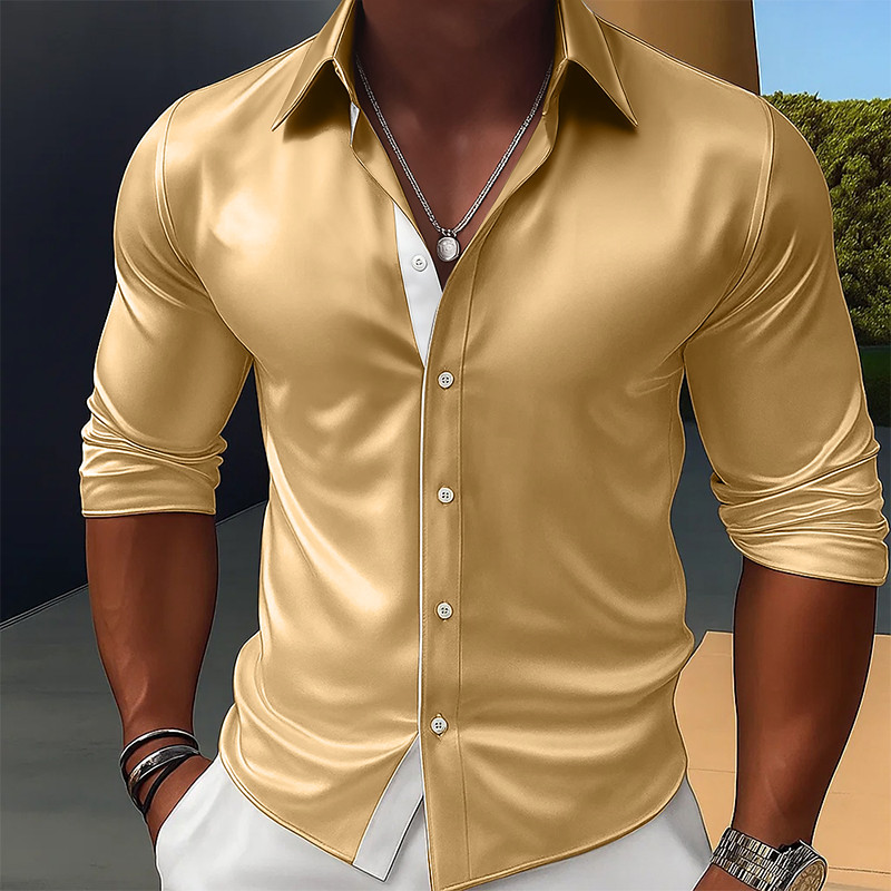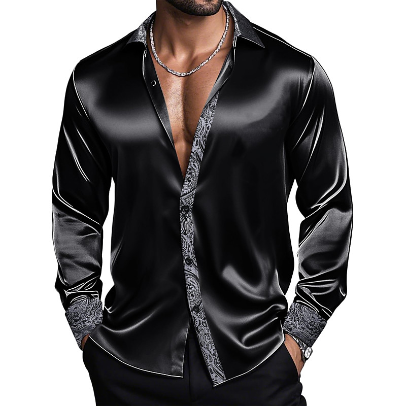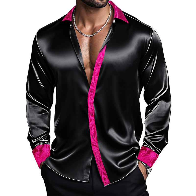 Men's Shirt Satin Shirt Dress Shirt Casual Shirt Button Up Shirt Prom Shirt Plain Formal Wedding Black Red Royal Blue Gold Long Sleeve Lapel All Seasons Clothing Apparel Color Block