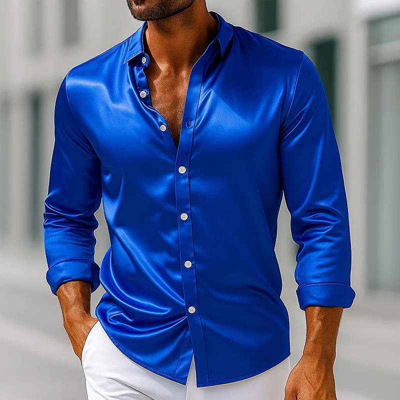 Men's Shirt Satin Shirt Dress Shirt Casual Shirt Button Up Shirt Prom Shirt Plain Formal Performance Light Blue Black Royal Blue Gold Long Sleeve Lapel All Seasons Clothing Apparel