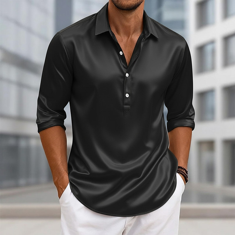 Men's Shirt Satin Shirt Dress Shirt Casual Shirt Button Up Shirt Prom Shirt Plain Formal Wedding Light Blue Black Pink Royal Blue Long Sleeve Henley Collar All Seasons Clothing Apparel