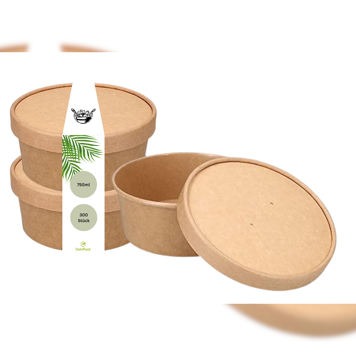 DeinPack 300 Salatschalen 750ml to go Schalen mit Deckel braun rund