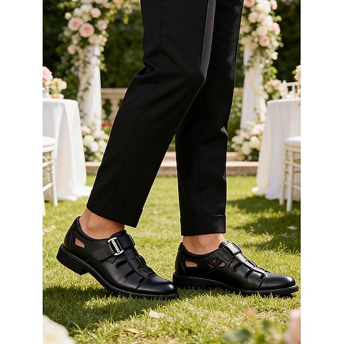 sandali da uomo in similpelle nera con cinturino, design aperto traspirante, vestibilità comoda e leggera, perfetti per matrimoni in spiaggia e feste all'aperto