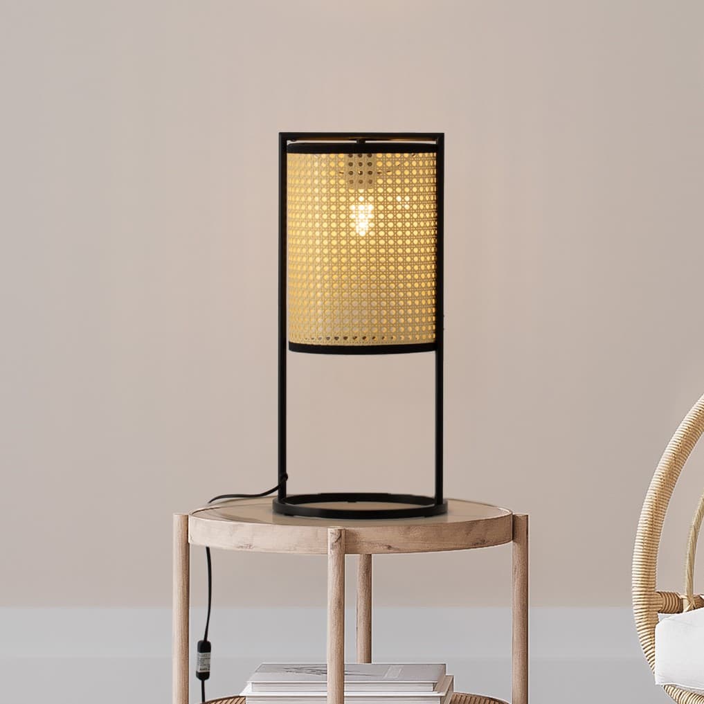 Nova Luce Erto - lampe de table - Ø 26 x 56 cm - noir sablé et rotin
