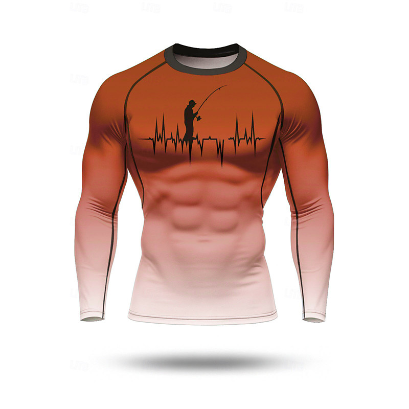 Men's Compression Shirt Running Shirt 3D Print Color Block Long Sleeve Base Layer Gradient Quick Dry Compression Power Flex Moisture Wicking Gym Workout Active Training Exercise Sportswear Activewear