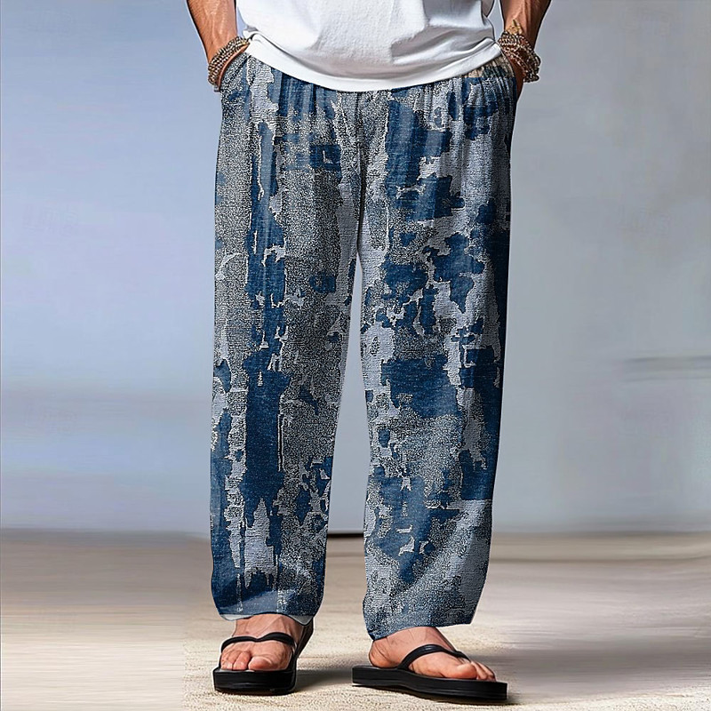 Men's Tie Dye Print Trousers Baggy Pants Casual Pants Mid Waist Vintage Retro Outdoor Vacation Holiday Drawstring Elastic Waist Wide Leg Summer Spring 3D Print Blue Brown Gray